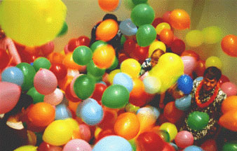 Norma locked themselves into the gallery space, and, visible to the audience through a large window and glass door, blew up 2500 party balloons. Participants donned Hawaiian outfits and were accompanied throughout the performance by party music played on a vintage record player. The audience was invited to watch, but were prevented from entering the space. Apart from bathroom breaks and pizza delivery, the door to the gallery remained locked. Partytime lasted 7 hours. The gallery was open to the public for two days following the performance.