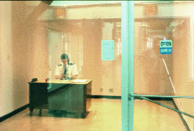 Norma fundraised for two months to prepare for this installation work. The collective hired a security guard to 'guard' the gallery space for the duration of one work week (5 days, 8 hours a day). Visitors were required to sign in upon entry to the space. Those with ID numbers containing arbitrarily defined digits (0's and 2's on Monday, 3's and 6's on Tuesday, and so on) were asked to immediately leave the gallery. If they refused, the security guard escorted them out. A surveillance camera broadcast a live feed of the installation to a monitor positioned outside the gallery in a public space.